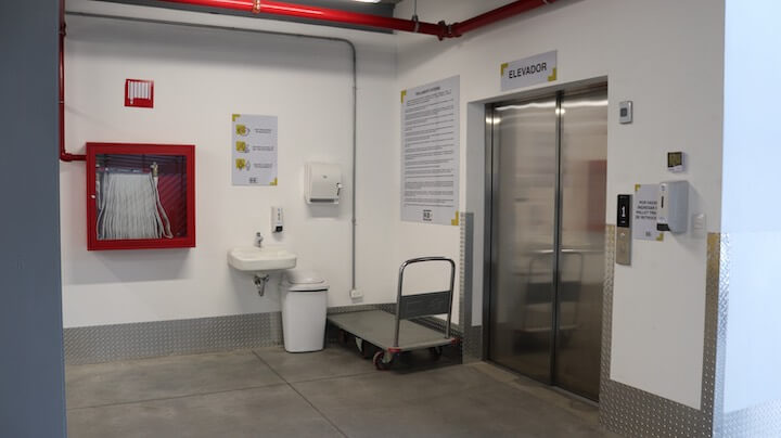 El centro de almacenamiento de KB+ cuenta con dos ascensores de carga de la marca Hyundai, que están disponibles para que los clientes los utilicen al momento de transportar sus pertenencias hacia o desde su Minibodega. Estos ascensores tienen dimensiones adecuadas para facilitar la carga y descarga de objetos voluminosos, lo que hace que el llenado y vaciado de las unidades sea más sencillo.